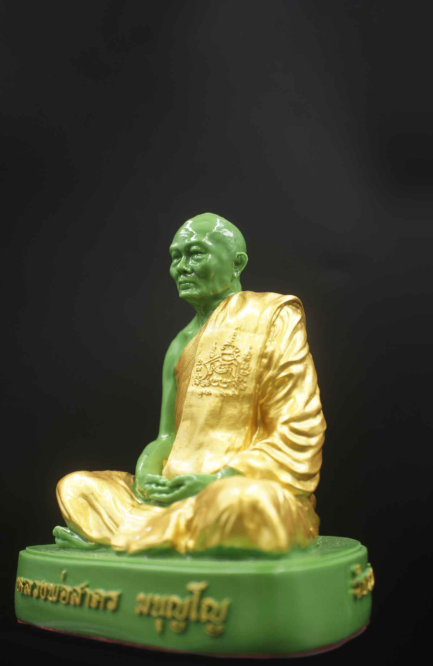 พระบูชา รูปหล่อ หลวงพ่อสาคร ( ย้อนยุค ) เนื้อเรซิ่นเขียว จีวรทอง ปี 2566 ขนาดหน้าตัก 3 นิ้ว สร้าง 1499 องค์ หมายเลข 3 หลัก ** สวย **799** ( หลวงพี่ภุชงค์ ศฺิษย์หลวงพ่อสาคร ปลุกเสก วัดหนองกรับ ) ขนาดคว |