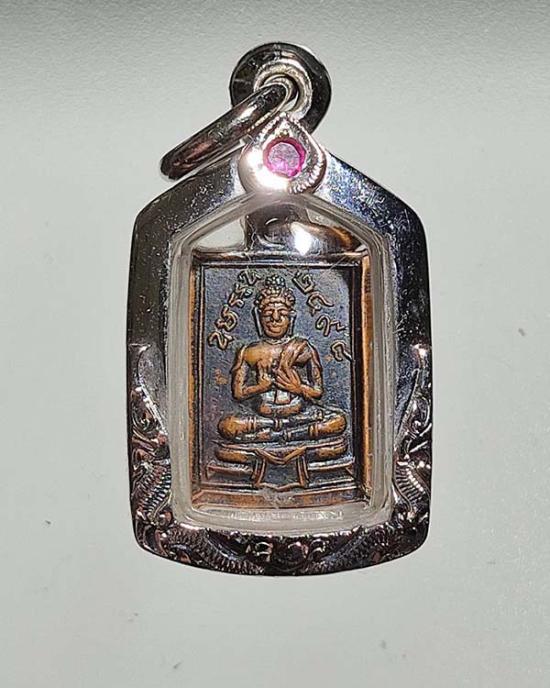 เหรียญรุ่นแรก หลวงพ่อผินะ วัดสนมลาว(วัดไทยงาม) ต.โคกแย้ อ.หนองแค จ.สระบุรี เนื้อทองแดง เดิมๆ เลี่ยมกรอบเงินฝังพลอย ปี 2498