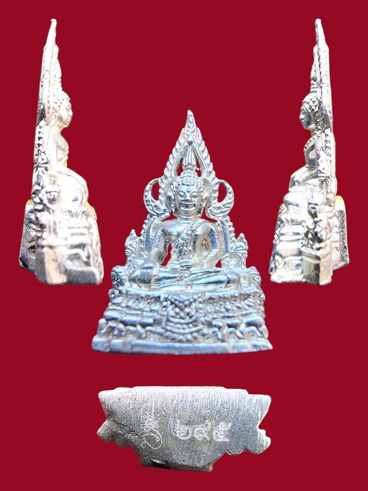 พระรูปหล่อพระพุทธชินราชเนื้อเงินประมาณปี 2533 ถึง 2536 ใต้ฐานตอกโค๊ตเนื้อเงินเปอร์เซ็นต์สูงสวยเดิมรับประกันตามกฎน้ำหนัก 2.5 กรัม |