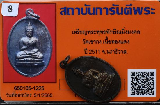 เหรียญพระพุทธทักษิณมิ่งมงคล เนื้อทองแดง ปี 2511 วัดเขากง จ.นราธิวาส + บัตรรับรองพระแท้การันตีพระ |