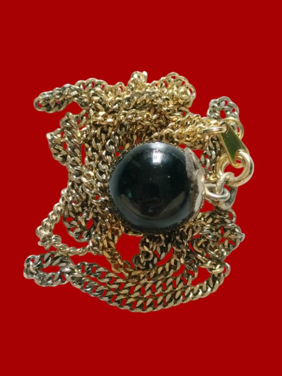 แก้วมณีรัตน จุกมังคุด สีดำ พร้อมสร้อยเดิม (แก้วสารพัดนึก) { รายการหายาก } หลวงพ่อฤาษีลิงดำ วัดท่าซุง จ. อุทัยธานี ((( สภาพผ่านการใช้ )))