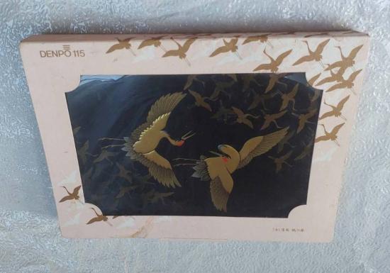 กล่องใส่ของที่ระลึกหรือกล่องเครื่องประดับที่ทำจากไม้เคลือบเงาญี่ปุ่น เคลือบเงา "Tsuru (Crane)" ของ Denpo 115 ลวดลายนกกระเรียนคู่ งานสวยมาก |