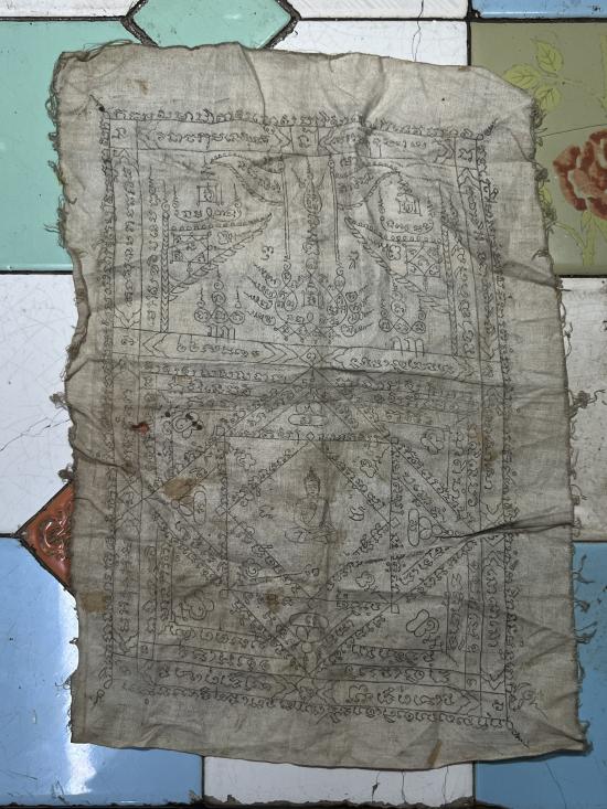 ผ้ายันต์เก่า ไม่ทราบที่ เข้มขลัง ขนาดผ้าเช็ดหน้า