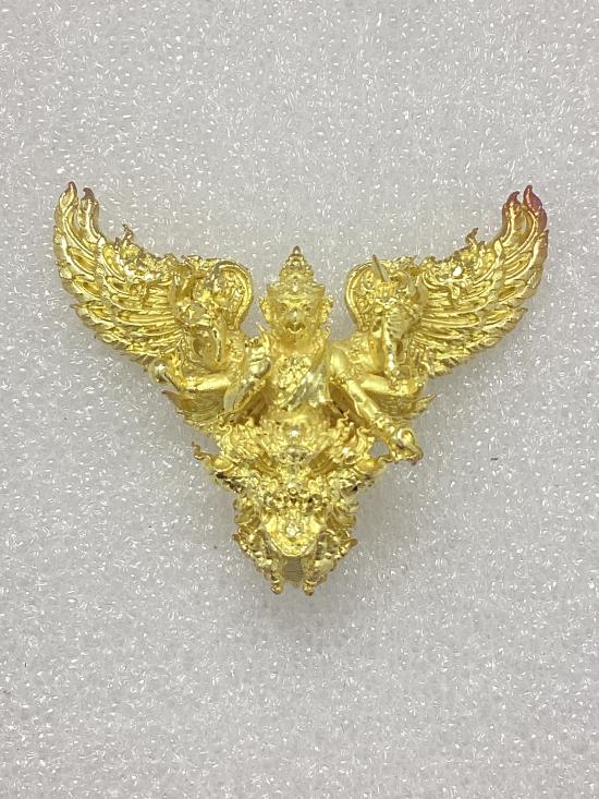 พญาครุฑมังรายศาสตร์ เศรษฐีอนันตทรัพย์ พระอาจารย์วิรุต วัดสันมะเหม้า จ.เชียงราย เนื้อสัมฤทธิ์ชุบทองขัดเงาบางส่วน พิมพ์เล็ก สูง 3 ซ.ม. กล่องเดิม |