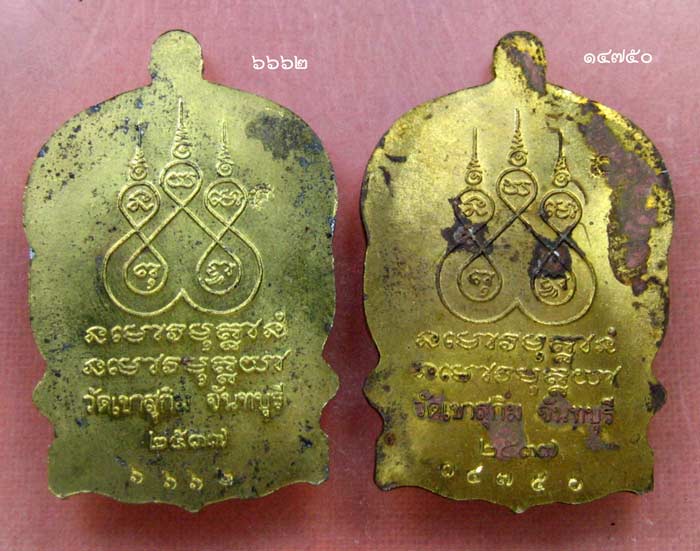 รายละเอียด เหรียญนั่งพาน เนื้อทองเหลือง หลวงพ่อสมชาย วัดเขาสุกิม ตอกโค้ด ส และโค้ด จำนวน 2 เหรียญ หมายเลข ๖๖๖๒ และ ๑๔๗๕๐ ได้มาจากคนในพื้นที่