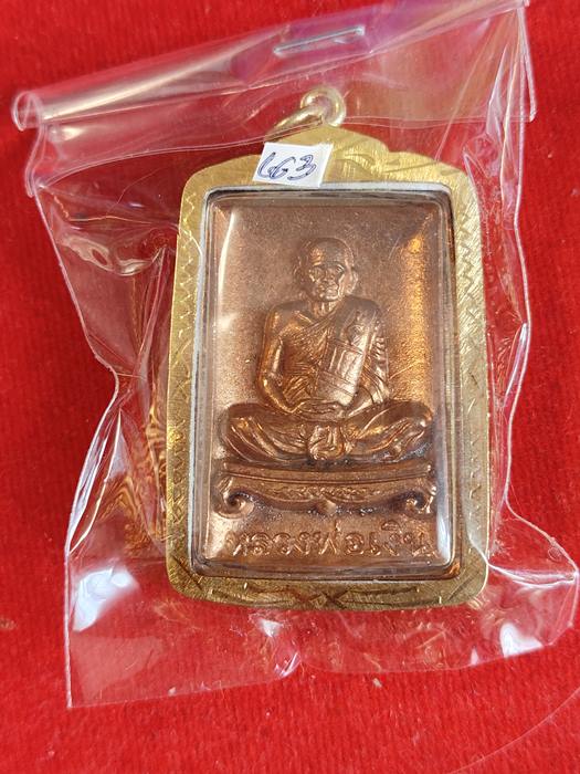 วัดใจ...เลข663 เหรียญหล่อ เนื้อทองแดง (พร้อมเลี่ยมกรอบไมครอน ไม่มีกล่องนะครับ) หลวงพ่อเงิน พิมพ์นั่งตั่ง รุ่นแรก รุ่นเศรษฐีเงินล้าน วัดยางโทน จังหวัดพิจิตร |