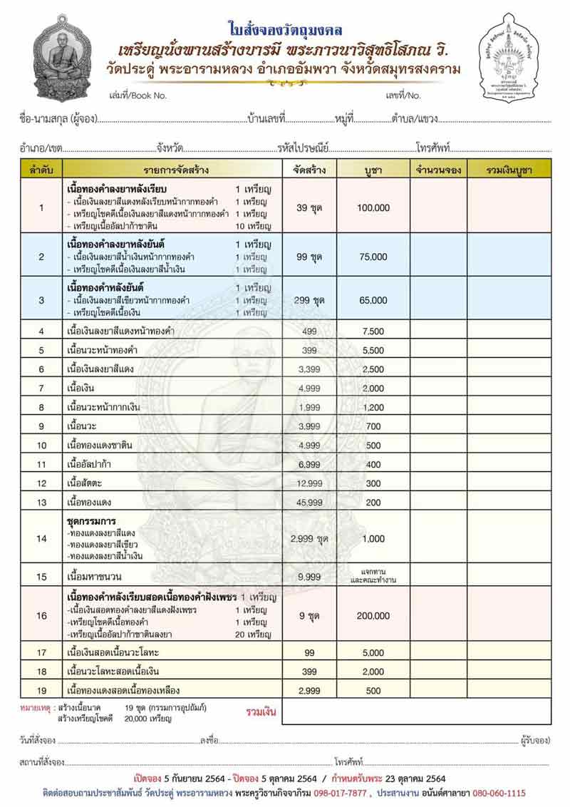 รายละเอียด เหรียญนั่งพาน รุ่นสร้างบารมี พระภาวนาวิสุทธิโสภณ(พระมหาสุรศักดิ์) วัดประดู่พระอารามหลวง สมุทรสงคราม ปี 2564 เนื้อนวโลหะพร้อมกล่องเดิม เหรียญอยู่ในซีลเดิม ลุ้นเลขสวย ราคาจอง 700 บาท เคาะเดียวแดงทุกรายการ ยินดีรับประกันตามกฎกติกาทุกประการครับ
