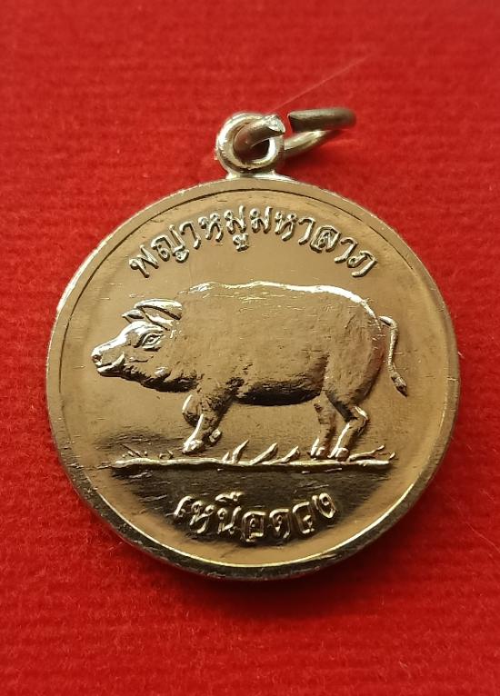 หลวงปู่มหาศิลา สิริจันโท ธรรมอุทยาน จ.กาฬสินธุ์ พญาหมูมหาลาภ รุ่น เหนือดวงหลังยันต์ขวัญถุง เนื้ออัลปาก้า |