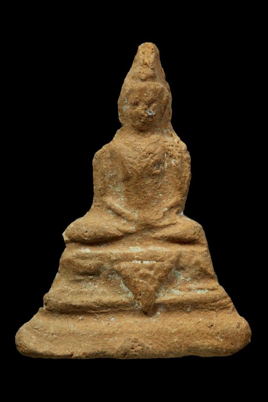 พระกรุวัดโปรดเกษ นนทบุรี พิมพ์พระแก้ว เนื้อดินผสมผงใบลาน นานๆจะเห็นสักองค์ ส่วนใหญ่พบแต่เนื้อตะกั่วสนิมแดง ขนาดห้อยบูชา 3 x 3.9 ซม.หายาก สภาพสวย |
