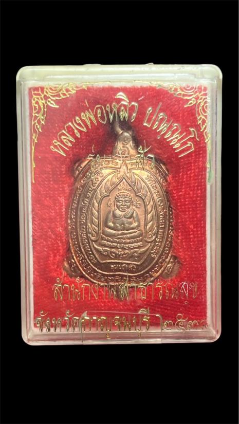 เหรียญพญาเต่าเรือน รุ่นเจ้าสัว ปี 38 หลวงปู่หลิว วัดไทรทองพัฒนา เนื้อทองแดงกล่องเขี้ยวหัก |