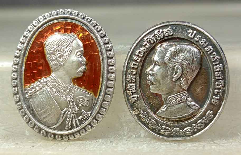 เหรียญร.5 เนื้อเงินลงยา วัดสุทัศน์ + เหรียญร.5 เนื้อเงินหลวงพ่อแพ วัดพิกุลทอง กล่องเดิม