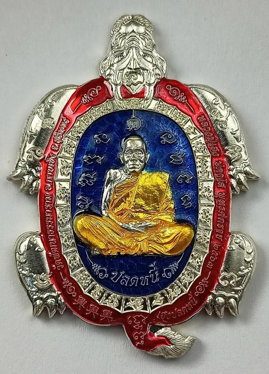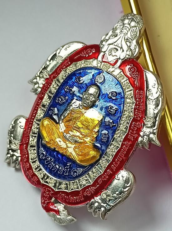 เหรียญ เต่ามังกรปลดหนี้ หลวงปู่เฮง ปภาโส วัดพัฒนาธรรมาราม จ.สุรินทร์ เนื้อเงินลงยา 3 สี เบอร์ 92 พร้อมกล่องเดิมครับ (เหรียญหนัก 30.91 กรัม)