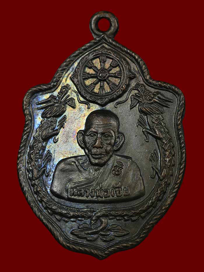 วัดใจ เหรียญหลวงพ่อเอีย วัดบ้านด่าน รุ่นมังกรคู่ โค๊ดวัด เนื้อทองแดง ปี 2517 สภาพสวยมีจาร
