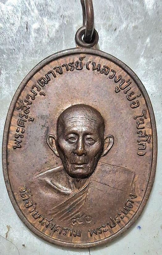 เหรียญหลวงปู่เย่อ วัดอาษาสงคราม รุ่น 4 เนื้อทองแดง วัดอาษาสงคราม ด้านหลังของเหรียญเป็นรูปหลวงพ่อโต วัดอาษาสงคราม เหรียญออกปี 2521 พิธีปลุกเสกใหญ่ มีพระเกจิดังมาร่วมมากมาย เหรียญแต่ละรุ่น มีประสบการณ์อย่างมากมาย แคล้วคลาดปราศจากภัย ด้านหน้า ตอกโค๊ด "๙๐" หลวงพ่ออายุครบ 90 ปี |
