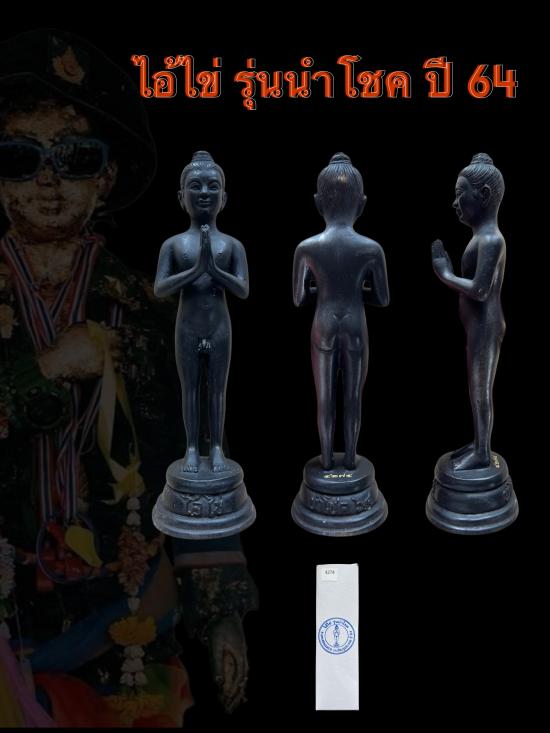 ชื่อพระเครื่อง รูปหล่อไอ้ไข่ รุ่นนำโชค ปี 64 สูง 7 นิ้ว เนื้อโลหะผสม รมดำ สภาพสวย มือ 1 เลข 4274 กล่องเดิม
