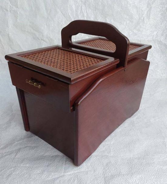 **วัดใจ***กล่องไม้ผสมหวายวินเทจญี่ปุ่น งานฝีมือเก่า มี 5 ช่องเก็บของ งานเก่าน่าสะสม สามารถใส่อุปกรณ์พระเครื่องได้ |