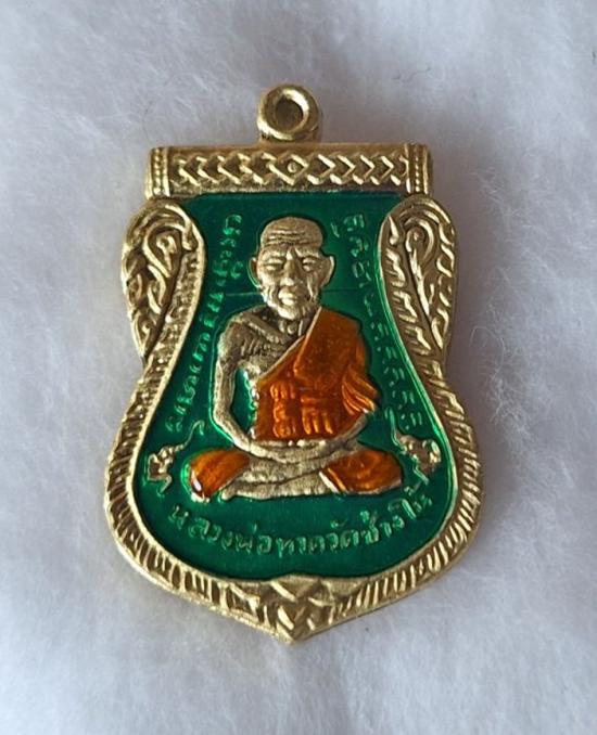 วัดใจ หลวงปู่ทวด หลวงปู่ศิลา เมตตาอธิษฐานจิต รุ่นเลื่อนสมณศักดิ์ เหนือดวง เนื้อทองทิพย์ ลงยา No.97 |