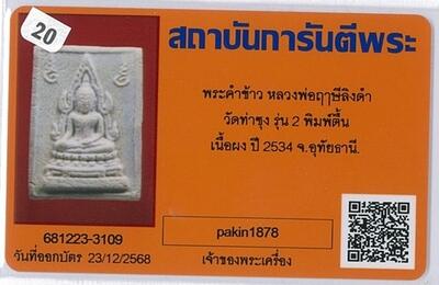 พระคำข้าว รุ่น 2 หลวงพ่อฤาษีลิงดำ วัดท่าซุง จ.อุทัยธานี |