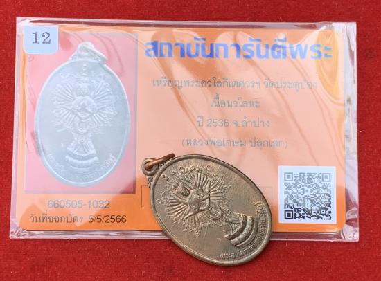 เหรียญพระอวโลกิเตศวร วัดประตูป่อง จ.ลำปาง พ.ศ. 2536 เนื้อนวโลหะ ( หลวงพ่อเกษม ปลุกเสก ) |