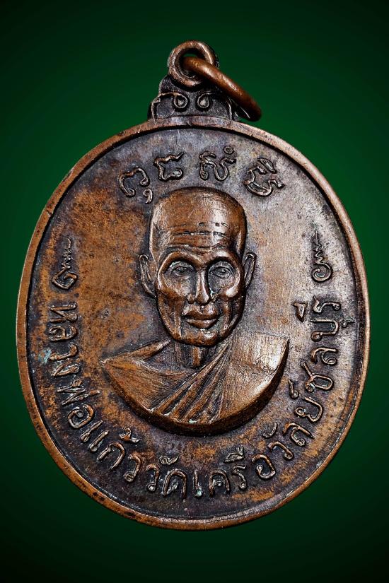 เหรียญหลวงพ่อแก้ว หลังพระปิดตา วัดเครือวัลย์ ปี 2519 เนื้อทองแดง จังหวัดชลบุรี