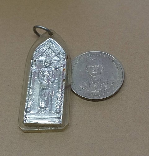 วัดใจ-เหรียญยืน ครูบาศรีวิชัย วัดพระธาตุดอยสุเทพ เนื้อขาปิ่นโต เลี่ยมเดิม