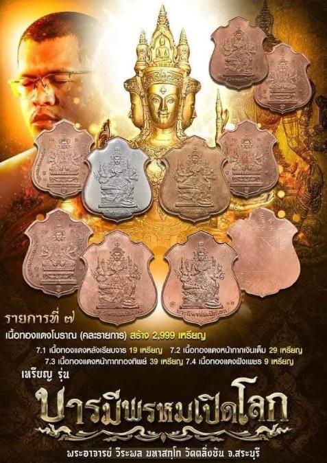 เหรียญบารมีพรหมเปิดโลก พระอาจารย์วีรพล วัดตลิ่งชัน เนื้อทองแดงโบราณ
