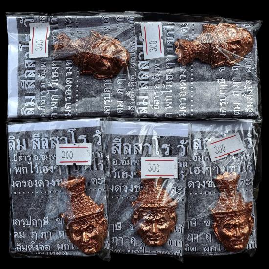 ชุด 5 องค์...เศียรปู่ดวงดีทวีโชค เนื้อทองแดง ด้านหลังฝังตะกรุดอุดผงมวลสาร ปี 2558 หลวงปู่เฉลิม วัดบุญนาคประชาสรรค์ จ.สมุทรสงคราม พร้อมใบฝอยเดิมจากวัด |