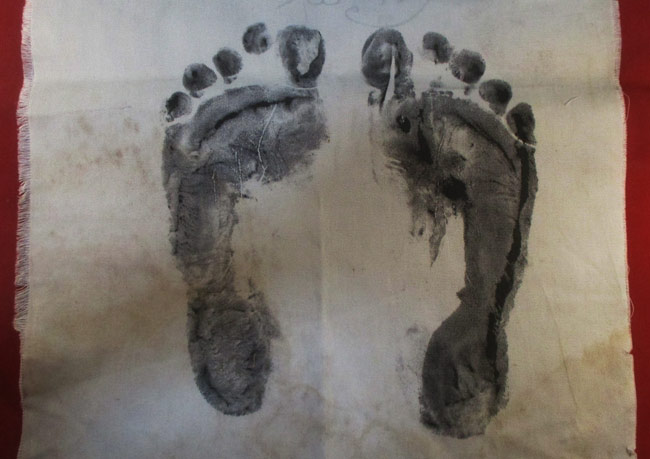 ผ้ายันต รอยมือ รอยท้าว ไม่ทราบที่ มีรอยจารยันต์ด้วยดินสอ ครับ (พระบ้าน ครับ) |