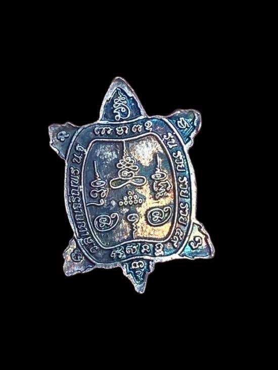 เหรียญเต่าจิ๋ว ไม่ทราบที่ ตัวเหรียญขนาดเล็ก ทรงเต่า ด้านหน้าเป็นรูปองค์พระนั่งสมาธิ ด้านหลังลงอักขระและยันต์เต็มพื้นที่ งานหล่อโลหะ ผิวผ่านการใช้งาน มีคราบอายุและรอยตามกาลเวลา ขนาดเหมาะสำหรับพกติดตัว แขวนห้อย หรือใส่กระเป๋าสตางค์ เหมาะกับสายสะสมเหรียญยันต์ขนาดเล็กและสายบูชาความหมายมงคล