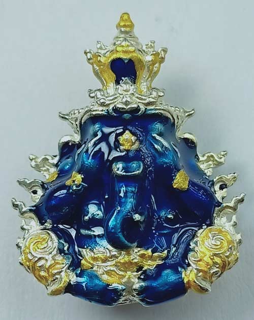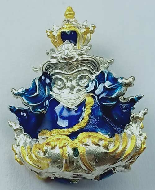 พระพิฆเนศ พิมพ์ปิดตามหาลาภ รุ่น เทวาราชาโชค หลวงปู่บุญมา โชติธัมโม สำนักสงฆ์เขาแก้วทอง เนื้อเงินลงยา เบอร์ 40 พร้อมกล่องครับ (น้ำหนัก 15.11 กรัม)