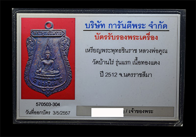 เหรียญพระพุทธชินราช"ยอดนิยม" หลวงพ่อคูณ (ออกวัดแจ้งนอก) ปี ๒๕๑๒.."พิเศษมีรอยจาร์ล..เนื้อทองแดงรมดำ..สภาพสวยผิวจี๊ดๆมีเหลือบรุ้ง(ตามภาพ)..โดยเหรียญพระพุทธชินราชนับเป็นเหรียญรุ่นแรกที่จัดสร้างและออกให้บูชาที่วัดแจ้งนอก มีพิธีปลุกเสก ๒ ครั้ง ..โดยครั้งที่ ๑ ต้นปี ๒๕๑๒.. ปลุกเสกในคราวเททองหล่อพระพุทธชินราชพระประธานในอุโบสถวัดแจ้งนอก และครั้งที่๒ ปลุกเสกในงานฉลองพระประธานพร้อมกับเหรียญหลวงพ่อคูณ "รุ่นแรก" นับเป็นเหรียญพระพุทธที่น่าบูชาอย่างยิ่งเพราะผสานรวมบารมีอันศักดิ์สิทธิ์ของหลวงพ่อพระพุทธชินราช และยังผ่านการปลุกเสกจากหลวงพ่อคูณอีกด้วยผสมผสานความเข้มขลัง..เหรียญสภาพสวยผิวจี๊ดๆมีเหลือบรุ้งๆ..แถมพิเศษมีรอยจาร์ล..ปัจจุบันหาไม่ง่ายแล้ว..พร้อมบัตรรับรองสบายใจไม่ผิดหวังแน่นอนครับ***รับประกัน** |