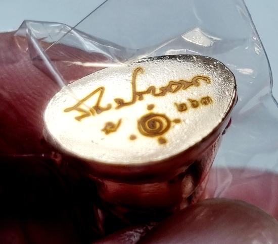 เมตตาเขียนตัวอย่างยันต์ ปิดก้นพระกริ่ง และมอบแผ่นพระยันต์เพื่อเป็นชนวนหล่อ พร้อมพุทธาภิเษกวาระแรก