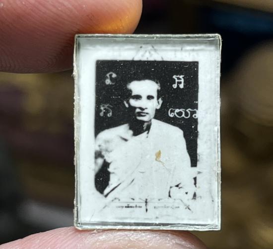 รูปถ่ายอัดกระจก หลวงพ่อซวง-พระอาจารย์เกรียง ขอบกระดาษทอง