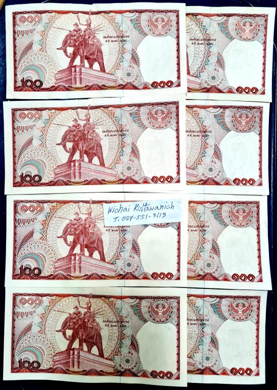 ธนบัตร ร 9 แบบ 12 ชนิดราคา 100 บาท ช้างแดง ผ่านใช้น้อย สวยๆ เลขไม่เรียง 8 ใบ |
