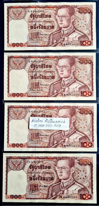ธนบัตร ร.9 แบบ 12 ชนิดราคา 100 บาท ช้างแดง สวยๆ หมวดเสริมพิเศษ S-พ 4 ใบ |