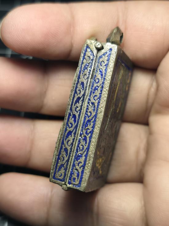 ตลับเงินลงยาใส่พระสมเด็จ แกะรวดลายงดงาม น้ำหนัก 19.51 กรัม