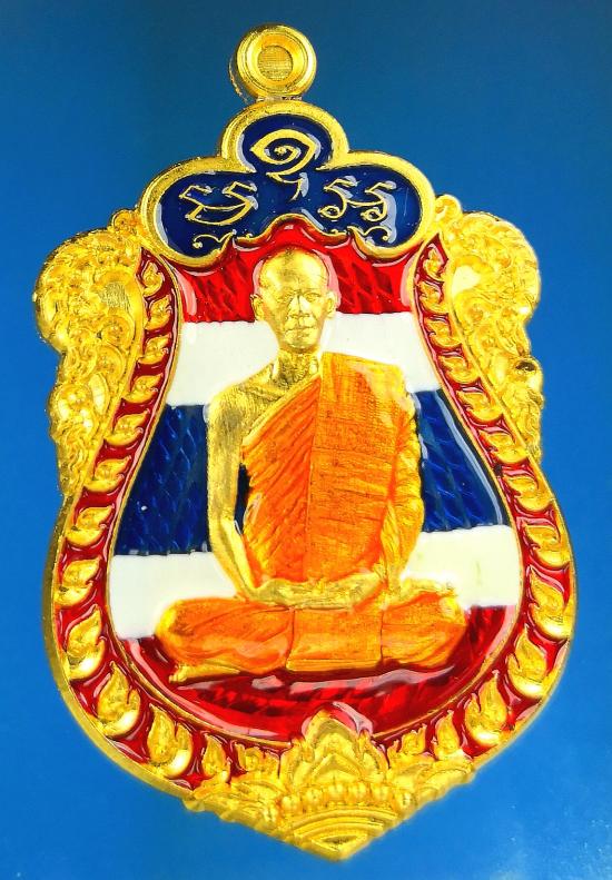 1300-เคาะเดียว เหรียญเสมาอุดมทรัพย์ พระอาจารย์ต้อม วัดท่าสะแบง ชุดกองบุญ เนื้อกะไหล่ทอง ลงยาธงชาติ ขอบแดง ชุ้มน้ำเงิน ลงยาจีวร เลข๑๓๔ เสมาใหญ่พิมพ์นิยม |