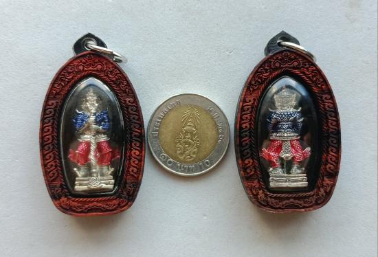 วัดใจเคาะเดียวแดงจ้า รูปหล่อท้าวเวสสุวรรณ หลวงปู่อิ่ม วัดทุ่งนาใหม่ เนื้อชุบเงินลงยา เลี่ยมกรอบไม้สั่งทำพิเศษ จำนวน2องค์ เคาะเดียวแดงจ้า |