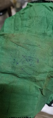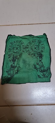 ผ้ายันต์กลับดวง หลวงพ่อทรง วัดศาลาดิน จ.อ่างทอง ปั๊มโค๊ดด้านหน้า ส่วนด้านหลังปั๊มยันต์จินดามณี (จางๆ) |