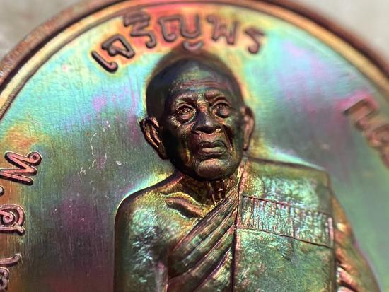 หลวงปู่แผ้ว ปวโร วัดรางหมัน เหรียญรุ่น เจริญพรบน วาระ 8 รอบ (เนื้อทองเเดงผิวรุ้ง) ###3