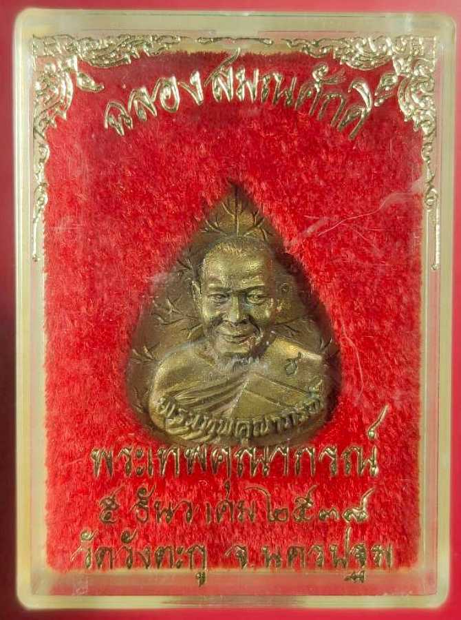 เหรียญหล่อฉลองสมณศักดิ์ พระเทพคุณากรณ์ วัดวังตะกู จ.นครปฐม ปี 2538 เนื้อทองเหลือง พร้อมกล่องเดิม โค๊ด "ช" ชัดเจน ใต้เหรียญมีรอยตะไบ