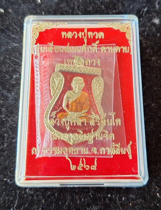 วัดใจ หลวงปู่ทวด หลวงปู่ศิลา เมตตาอธิษฐานจิต รุ่นเลื่อนสมณศักดิ์ เหนือดวง เนื้อทองทิพย์ ลงยา No.114 |