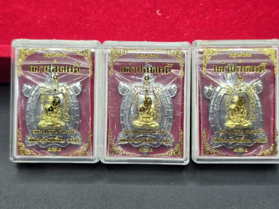 เหรียญเต่าปลดหนี้ ปี62 เนื้อชินตะกั่วหน้ากากฝาบาตร ตอกแจก 3 องค์ เลข 100,97,27 หลวงปู่บุญสม สมาจาโร ที่พักสงฆ์ร่มโพธิ์ทอง จ.ชลบุรี(ศิษย์หลวงปู่สรวง)