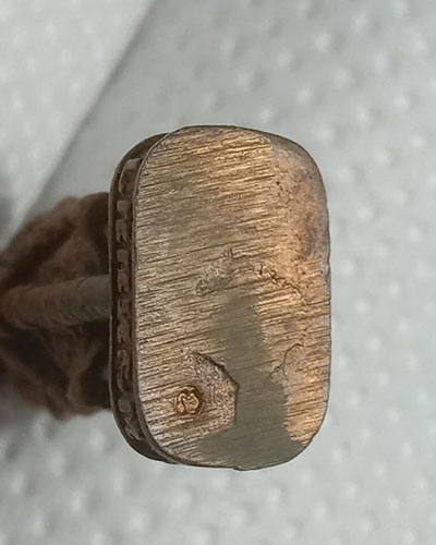 รูปหล่อท้าวเวสสุวรรณ "รุ่นแรก (รุ่นสุริยุปราคา)" เนื้อโลหะ ปี 2538 หลวงปู่พรหมา เขมจาโร สำนักวิปัสสนาสวนหินผานางคอย จังหวัดอุบลราชธานี สำหรับรูปหล่อท้าวเวสสุวรรณรุ่นนี้ได้ทำพิธีปลุกเสกในวันสุริยุปราคาเมื่อวันที่ 24 ต.ค.2538 (วันที่เกิดสุริยุปราคา) โดยหลวงปู่พรหมาได้มีเมตตาอธิษฐานจิตปลุกเสกเดี่ยวให้ รุ่นนี้มีการตอกโค้ดกำกับอยู่ใต้ฐานด้วย (ตามรูป) ครับ |