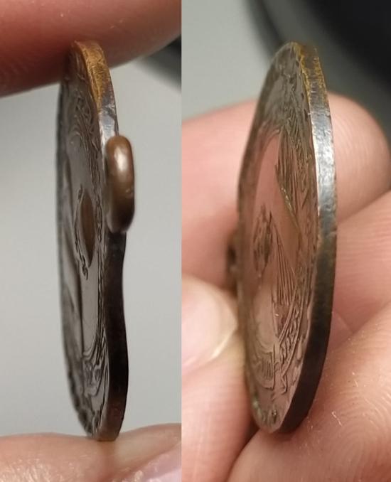 ขอบเหรียญด้านบน (รูปซ้ายมือเรา) จะบิดเบี้ยวเล็กน้อยครับ