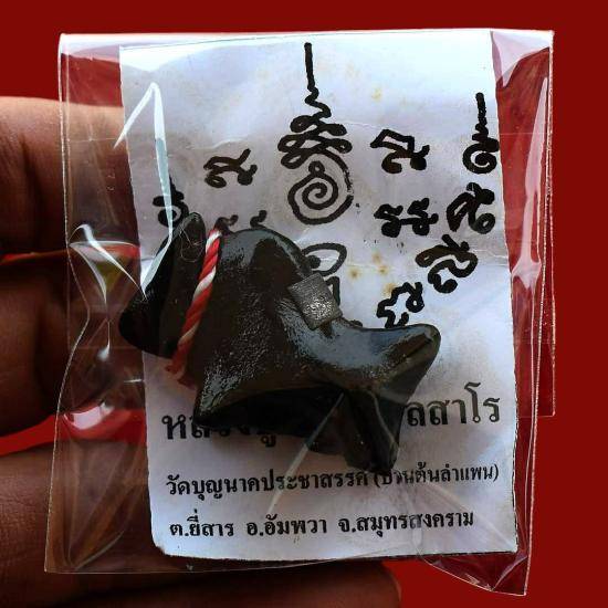 วัวพยนต์มหามนตรา รุ่นแรก ปี 2557 หลวงปู่เฉลิม วัดบุญนาคประชาสรรค์ จ.สมุทรสงคราม หลวงปู่สร้างไว้จากดินอาถรรพณ์ตามตำรับโบราณ ปั้นลงสูตรทีล่ะตัว รูปแบบจึงแตกต่างกันไป (เพราะเป็นงานปั้นมือทีล่ะตัว) มีโค๊ตกำกับทุกตัว พร้อมซองใบยันต์เดิมจากวัด (หลวงปู่ใช้มวลสารล้วน ตัวประสารน้อย ก่อนนำไปจุ่มรัก) สภาพพระตามรูปที่ลงทุกประการ (ขนาดหัวถึงท้ายยาวประมาณ 4 ซม. + สูงประมาณ 3 ซม.)