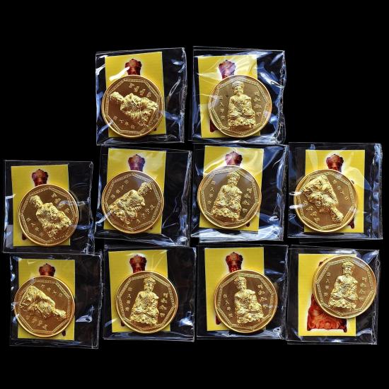 ชุด 10 องค์...เหรียญไต้ฮงกง หลังยันต์กันภัย เนื้อกะไหล่ทอง ปี 2551 มีภาพเทพเจ้าไต้ฮงกง ในซองทุกเหรียญ บวงสรวง ศาลเจ้าพลับพลาชัย หลวงพ่อรวย วัดตะโก , พ่อท่านบุญให้ วัดท่าม่วง ปลุกเสก