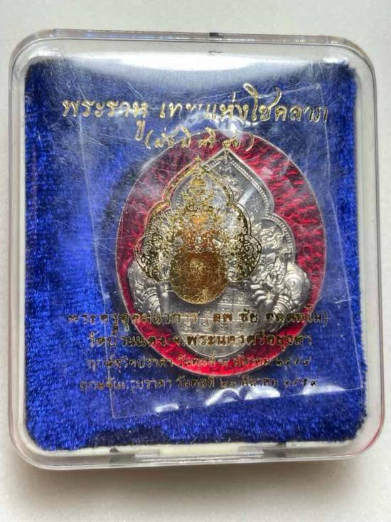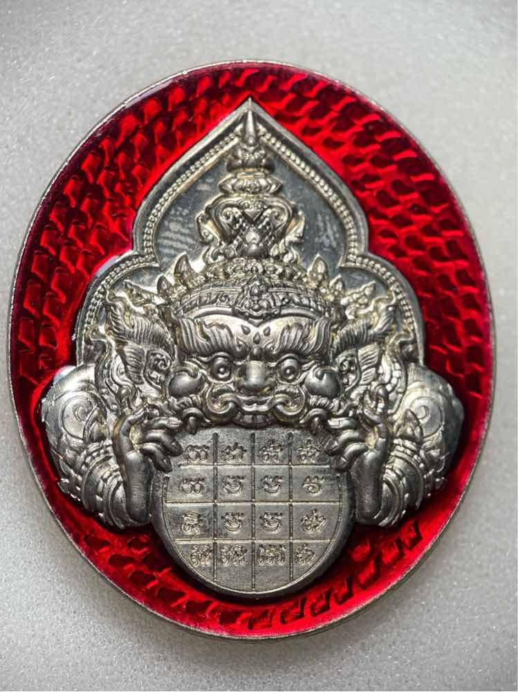 300.- ems เหรียญพระราหู รุ่นแรก #กรรมการ เนื้อทองขาวโบราณลงยาแดง เลขสวยสุดๆ no. 7 หลวงพ่อชัย วัดบ้านแดง อยุธยา (ลูกศิษย์ หลวงปู่ทิม วัดพระขาว) เสก 3 วาระ สุริยุปราคา - จันทรุปราคา สวยเดิมคากล่อง
