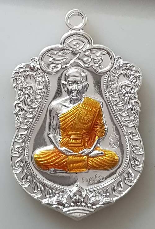 ::(**เหรียญเสมา**เนื้อ-เงินบริสุทธิ์/ลงยาจีวร หมายเลข 176 (ลงท้าย0-4-6 ลงยาจีวร)ราคาจอง 2,000 บาท::พร้อมกล่อง