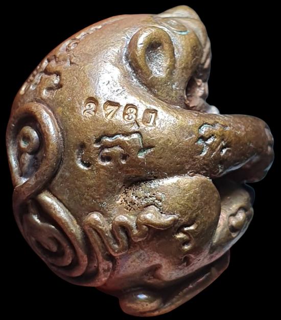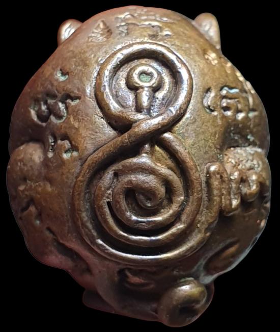 เนื้อโลหะสัมฤทธิ์ฝังตะกรุดเงินอุดผงเขี้ยวงา หมายเลข2731 สภาพสมบูรณ์